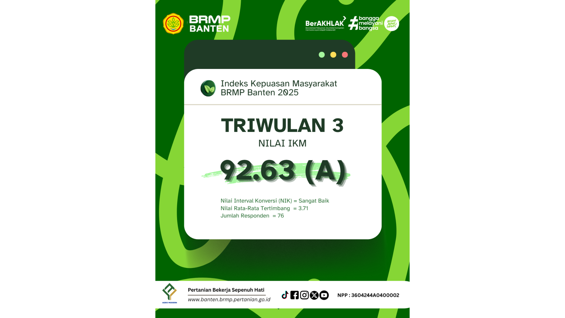 Balai Penerapan Modernisasi Pertanian Banten menyediakan beragam layanan untuk memastikan produk dan teknologi pertanian memenuhi standar mutu, keamanan, dan keberlanjutan. Seluruh layanan dilaksanakan sesuai Standar Pelayanan Publik (SPP) BRMP, sehingga terjamin transparan, cepat, dan terpercaya.